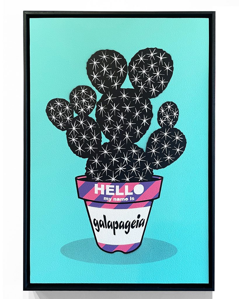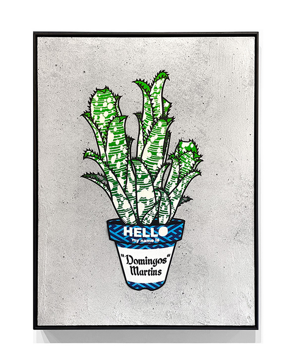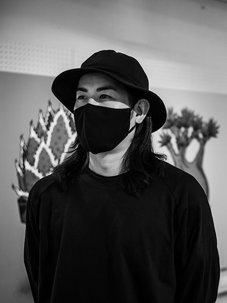 近所の花屋でひとつのサボテンを購入したことがきっかけで植物の世界に没頭していく。植物を育てていくうちに生活リズムや世の中との繋がりに変化が起こり植物の魅力を多くの人に知ってもらいたいと考えるようになる。自分が本当にやりたいことは何か、頭の中にあるイメージやアイデアは目に見える形で表現すべきだと、自信が経験し影響を受けてきたストリートカルチャーと植物を融合させ、“管理不要の枯れない植物”をコンセプトにステンシルやシルクスクリーンといった技法で制作をしている。