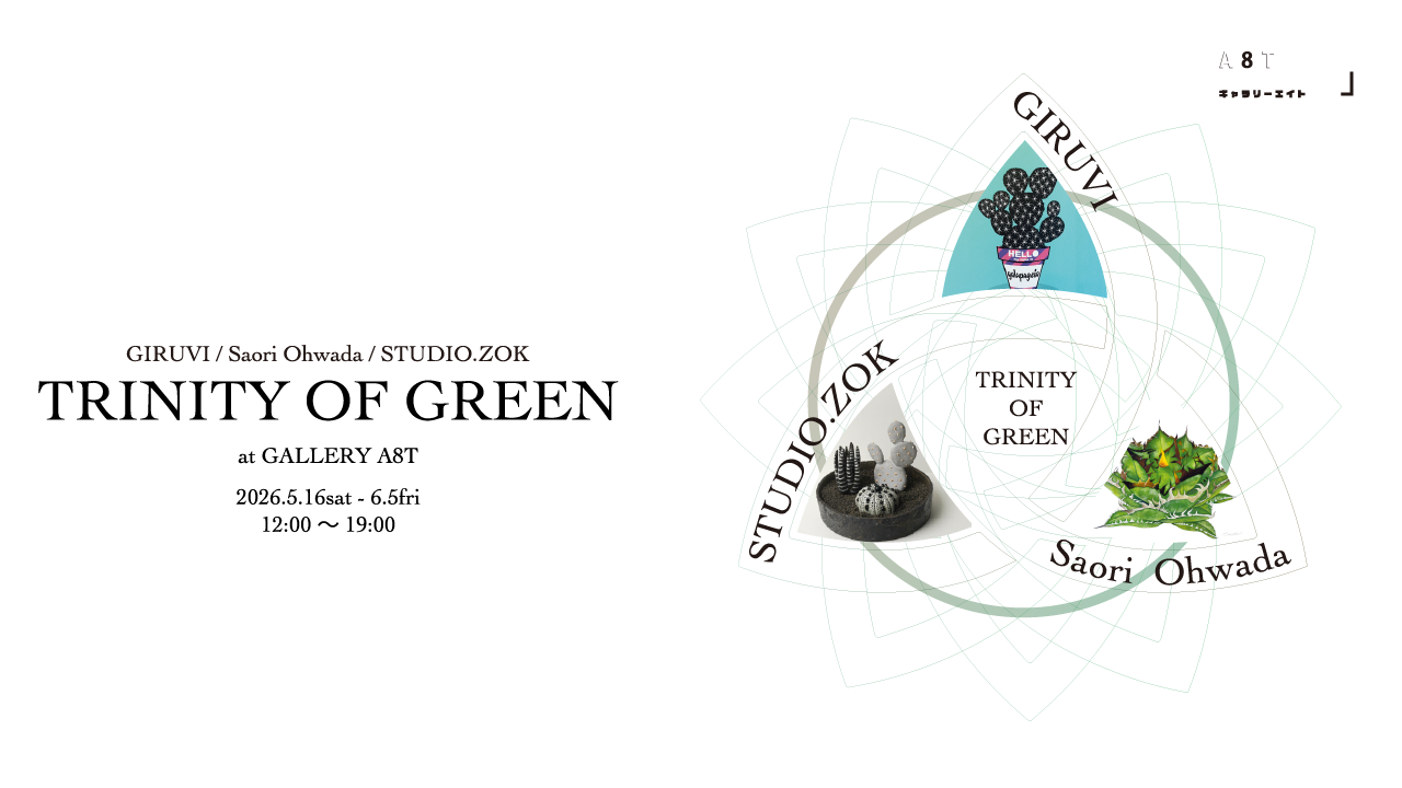 2026年5月16日(土)〜6月5日(金)の日程で、GIRUVI / Saori Ohwada / STUDIO.ZOKによる三人展「TRINITY OF GREEN」を開催いたします。