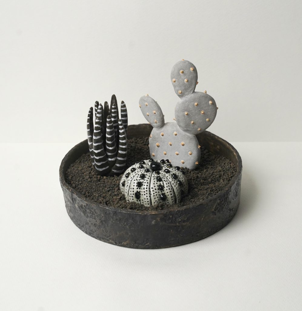 “植物×ストリートカルチャー”という独自の視点から、ステンシルやシルクスクリーンプリントで平面作品を生み出すGIRUVI(ギルビ)。植物が持つ個性を細やかなタッチで引き出し、作品に力強い生命力を宿すSaori Ohwada(サオリオオワダ)。そして、多肉植物の造形を陶芸で表現し、アート性の高いインテリアオブジェとしての「陶植」を提案するSTUDIO.ZOK(スタジオゾック)。